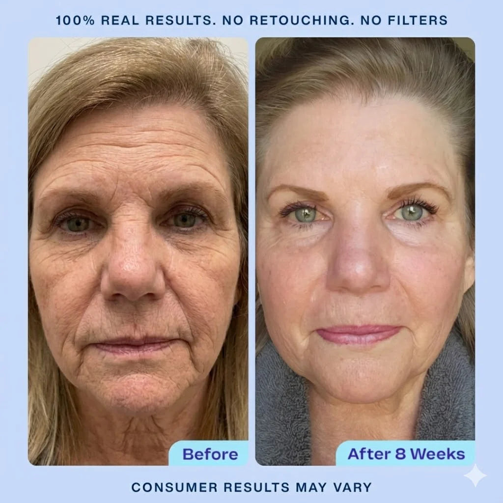 Reduces fine lines and crow's feet naturally. Works on forehead, eyes, and smile lines. Visible smoothing in 2-4 weeks.